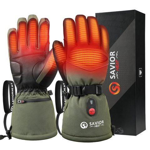 SAVIOR Verde 7.4V 3000mAh Luvas De Esqui Ao Ar Livre Quente Nariz-limpe Fita Reflexiva Luvas De Esqui Aquecidas Luvas Aquecidas Recarregável